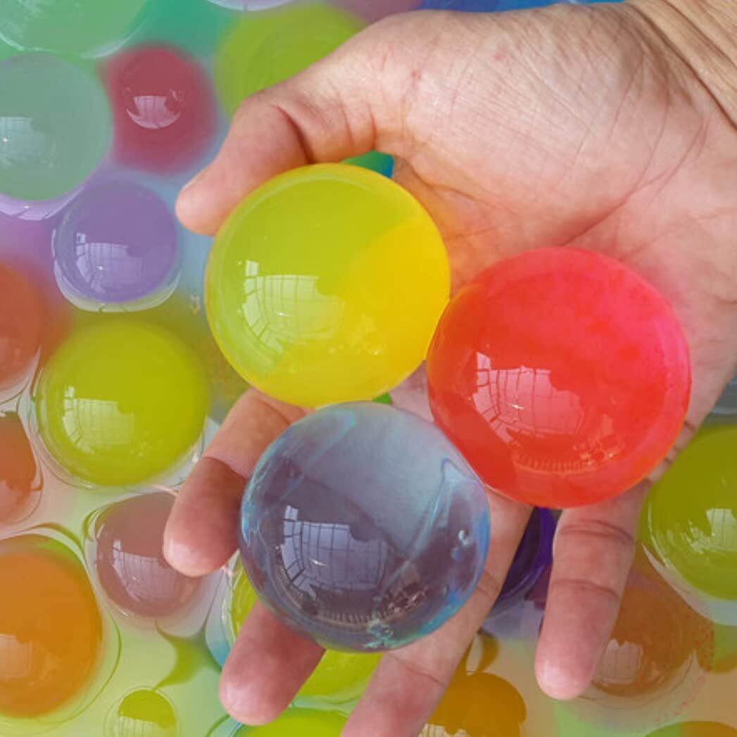 高い透明度が美しく、ぷよぷよした感触が気持ちいい「ぷよぷよボール(ジュエリーボール)」を使った視覚を刺激する遊びです。1cmと5cmのサイズ違いのぷよぷよボールを使って、色水に入れるとまわりに同化してぷよぷよボールが消えたかのように見えるトリック性を生かして、光と色の視覚効果を体験します。